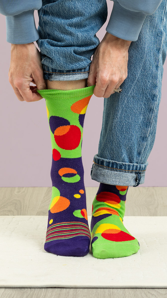 We design purposely mismatched socks that make for cheeky gifts and lots of smiles.