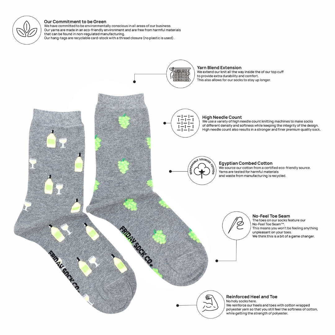 It's not good to keep things bottled up! Relax and un-wine in Women's White Wine and Grapes socks.