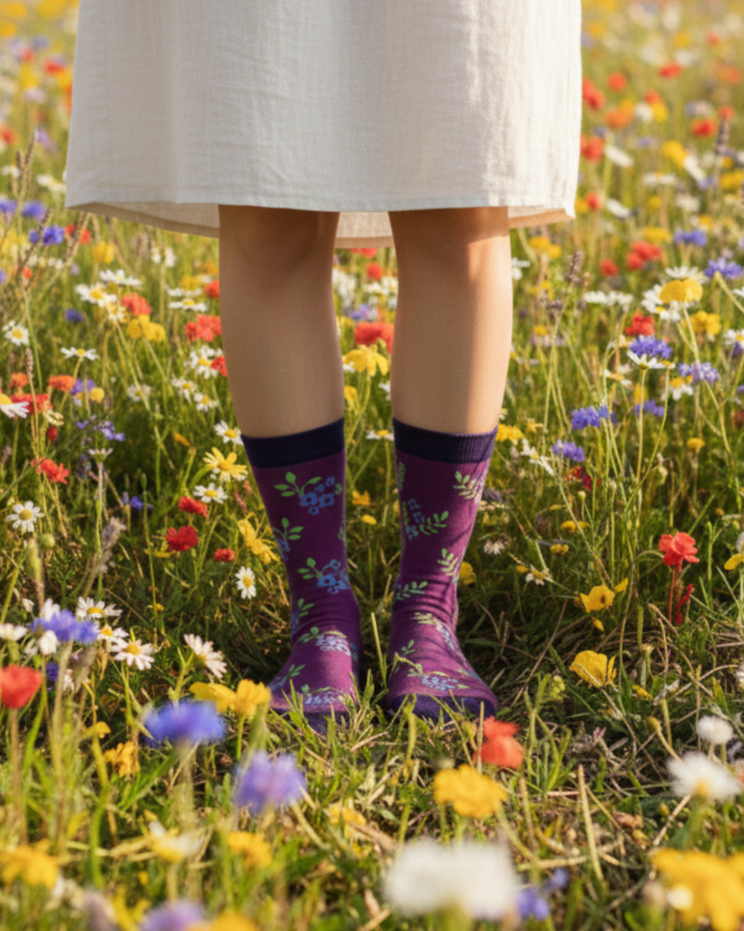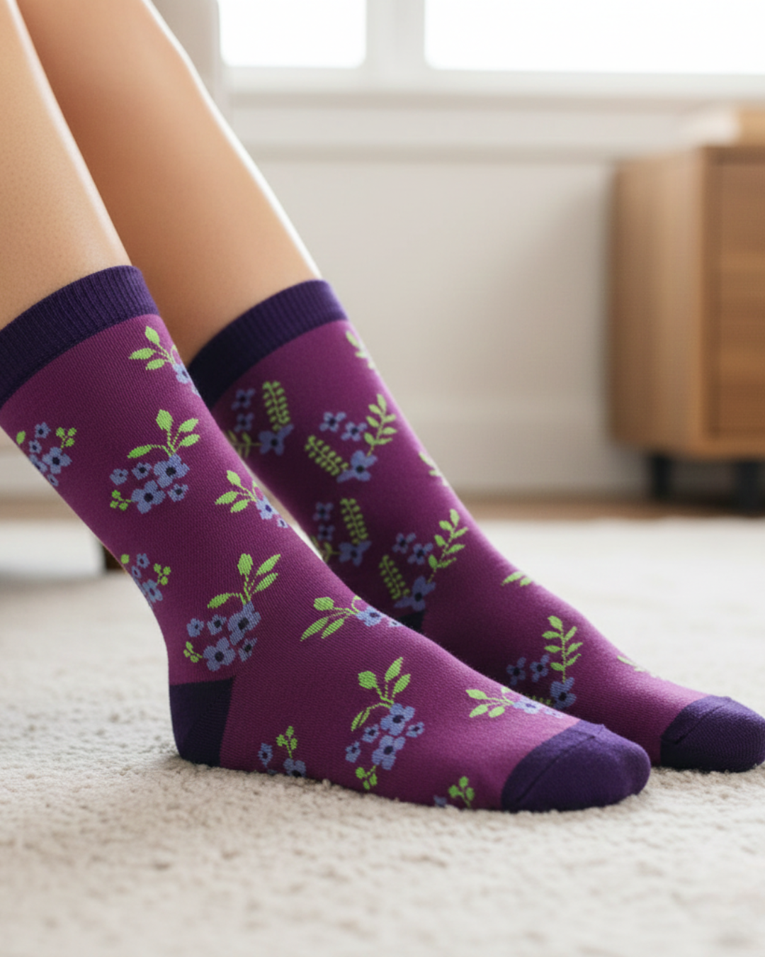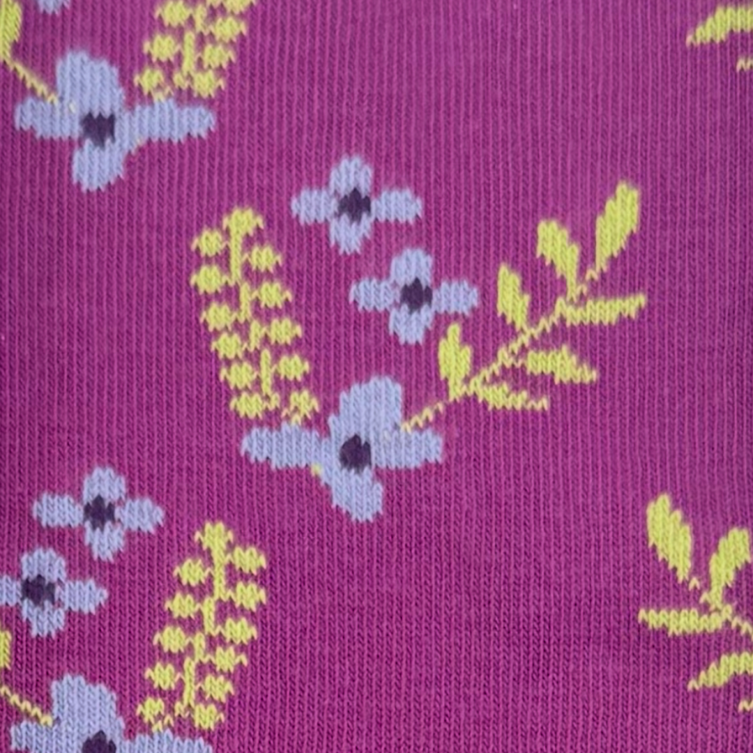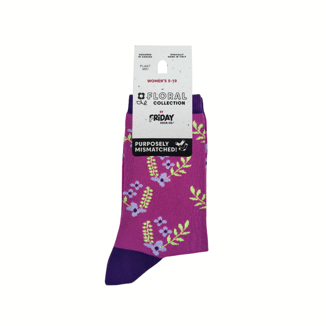 Blooming bouquets, perfectly mismatched! These socks are a rich combo of plum hues and vibrant floral vibes.