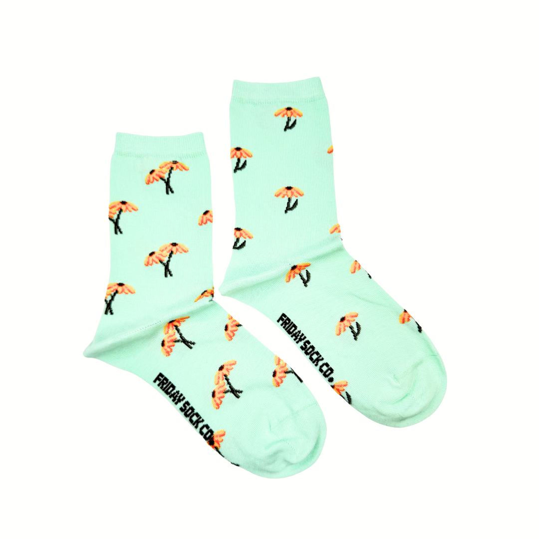 Sunshine in every step, perfectly mismatched! These socks are a fresh combo of minty hues and cheerful floral vibes.