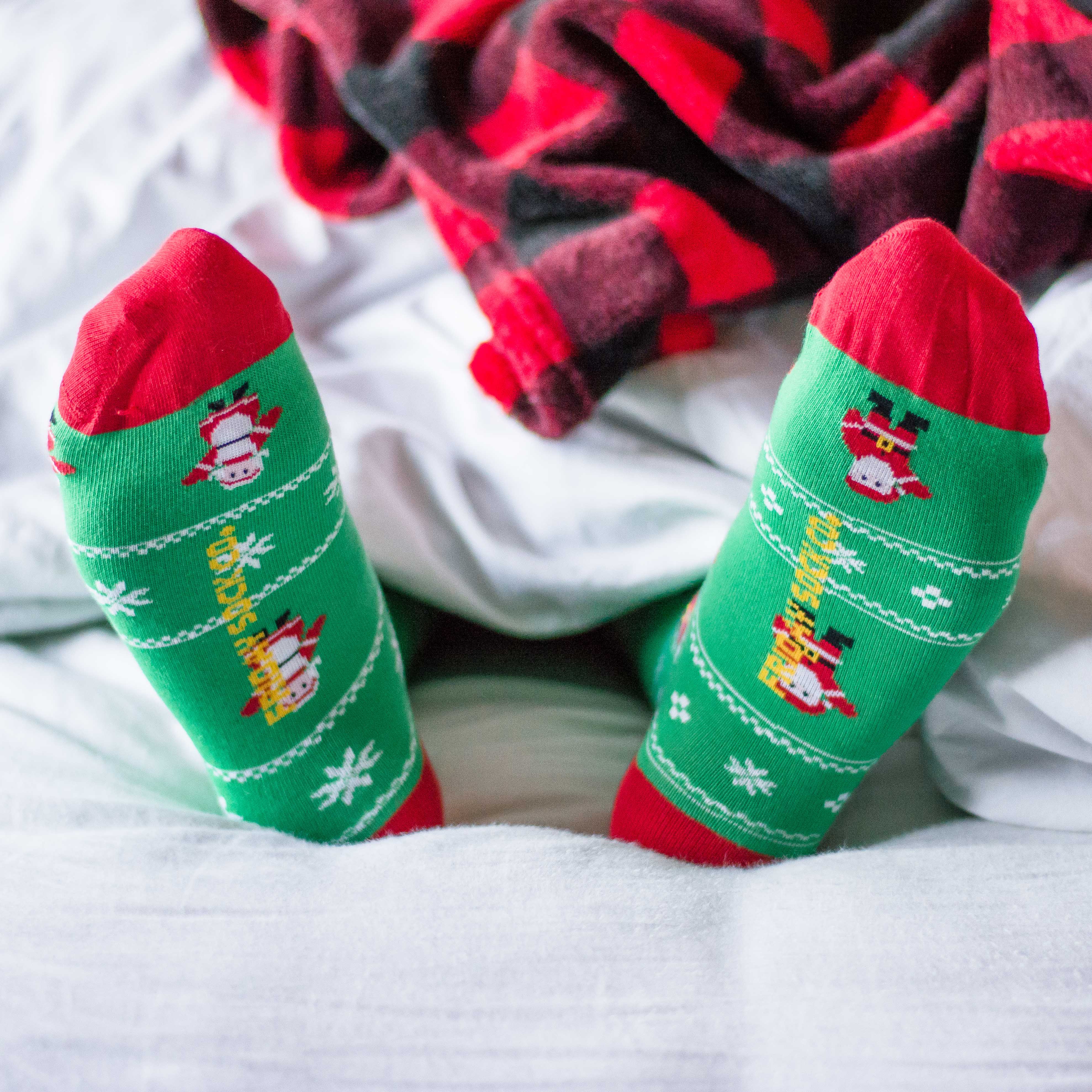 Put these ugly Christmas socks on your loved one's feet this year! These Ugly Christmas Mr. & Mrs. Claus purposely mismatched socks make a fantastic gift! Designed in Canada and ethically made in Italy.