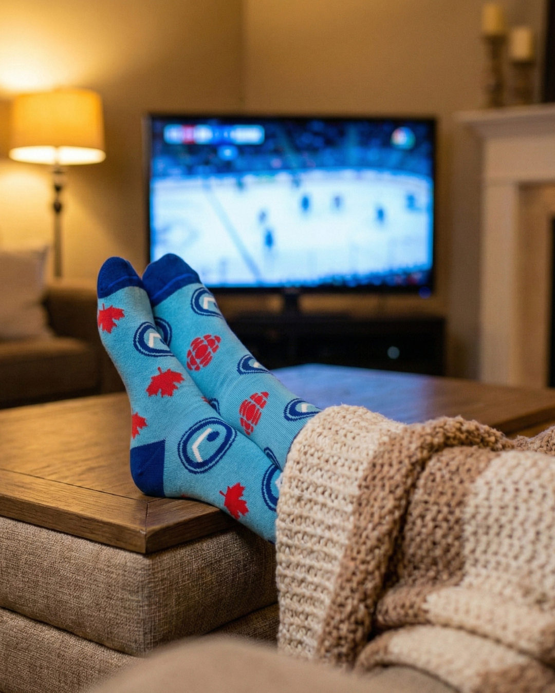 He shoots, he scores... a pair of one-of-a-kind purposely mismatched CBC Hockey Night in Canada socks!