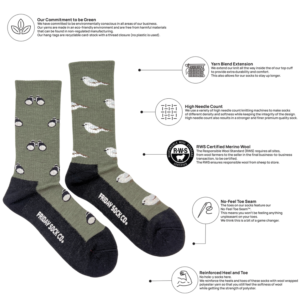 Observe Nature in Total Comfort. The ideal sock for the dedicated naturalist, offering stealth and performance for every quiet moment outdoors. Perfect for the early riser or the man who finds peace in the quiet outdoors, these are a sophisticated nod to the hobby, designed to keep you comfortable while you focus on the wildlife.