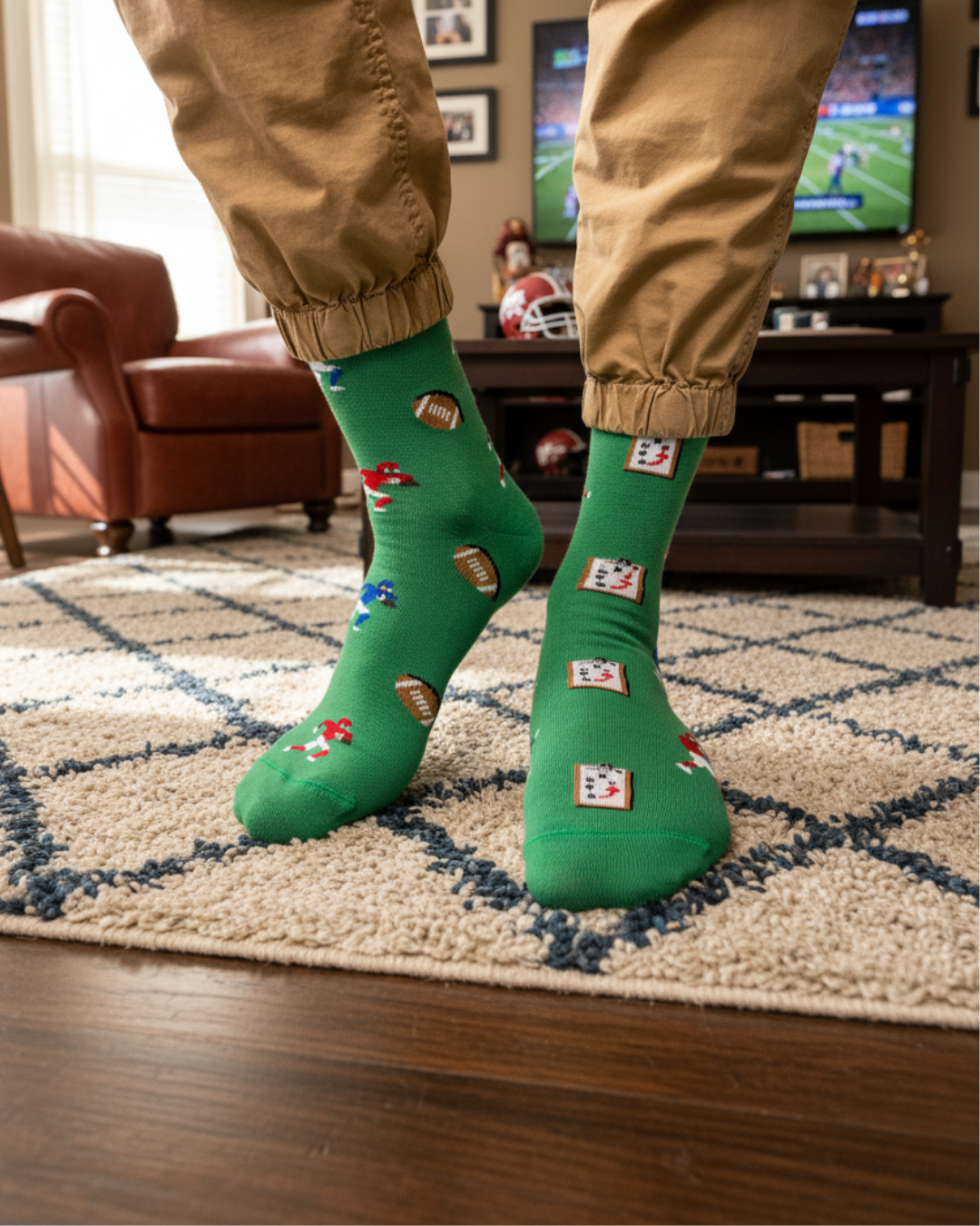 Touchdown! These Football Player Socks are bringing the game to your feet, complete with plays, passes, and plenty of team spirit. Perfect for couch coaches, die-hard fans, and halftime snack enthusiasts.