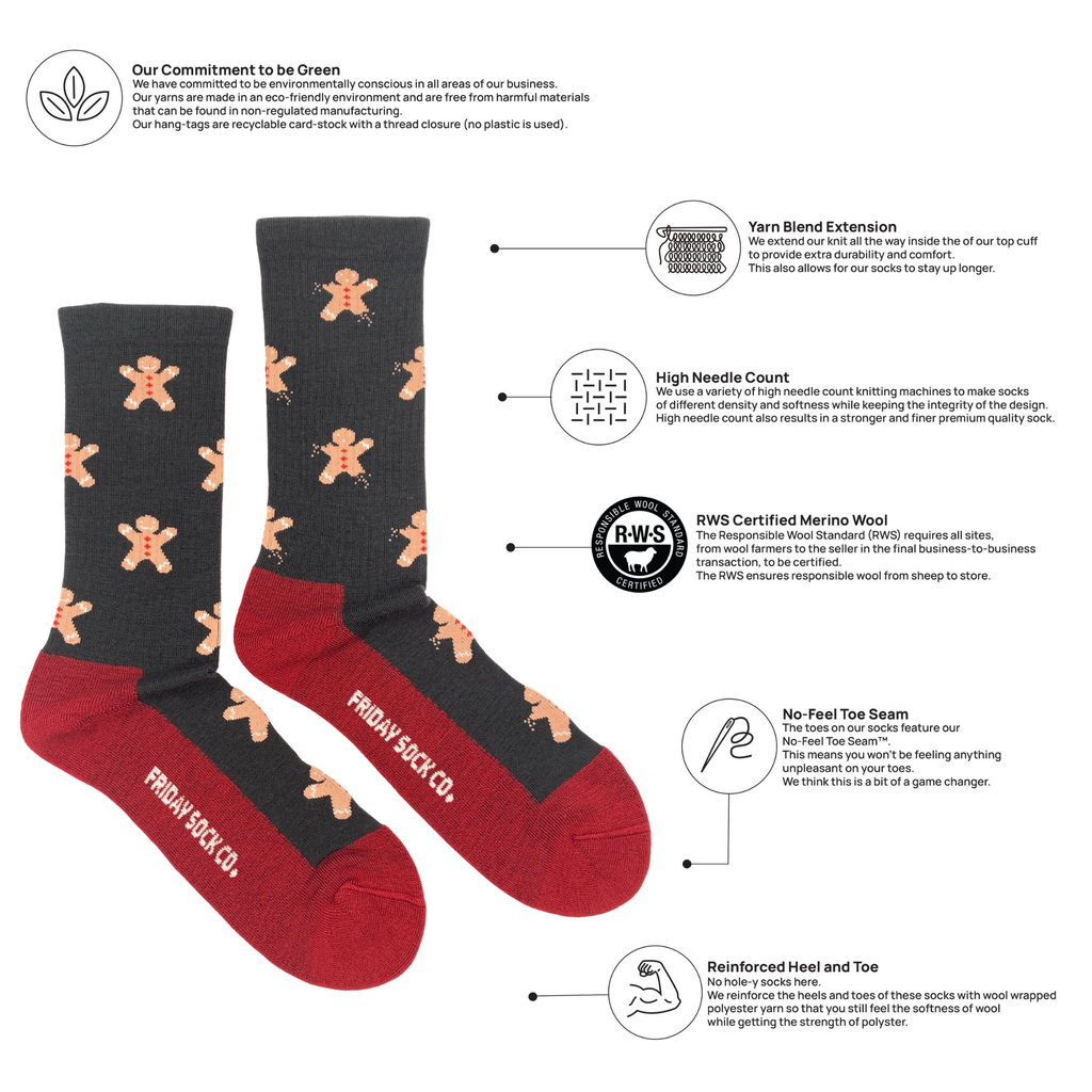Your Feet's Favourite Holiday Treat. Wrap up the season with the coziest, cutest sock for every holiday gathering and winter night. Get ready for the annual baking day (or just the couch marathon) with the perfect festive footwear! They're the cheerful accessory that proves men can rock holiday flair too!