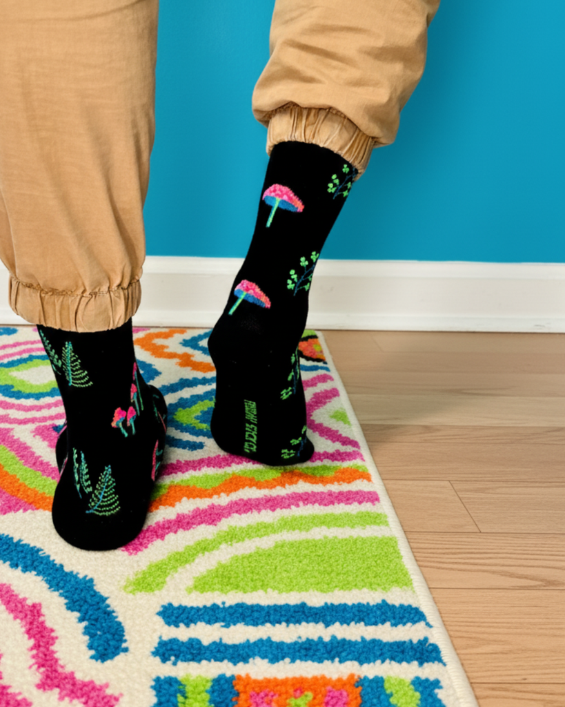 A little funky, a little forest-y, and totally fun(gi). These Neon Mushroom Socks are proof that good things grow in unexpected places — like your sock drawer!
