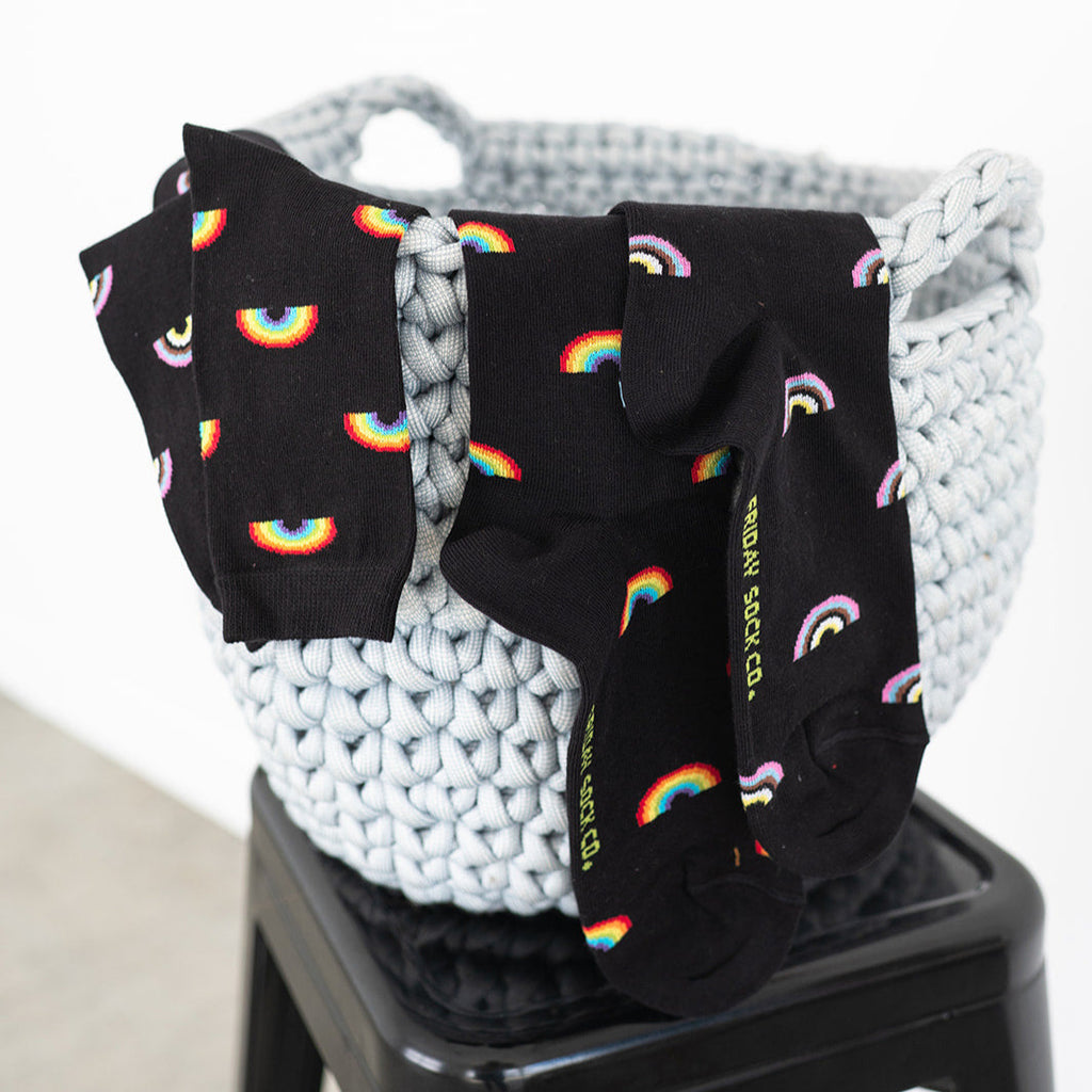 Show your pride with our Men’s Rainbow Inclusive Socks, featuring vibrant mismatched designs celebrating love and equality. These colorful, comfy socks are perfect for adding a little joy to your step and spreading good vibes wherever you go!