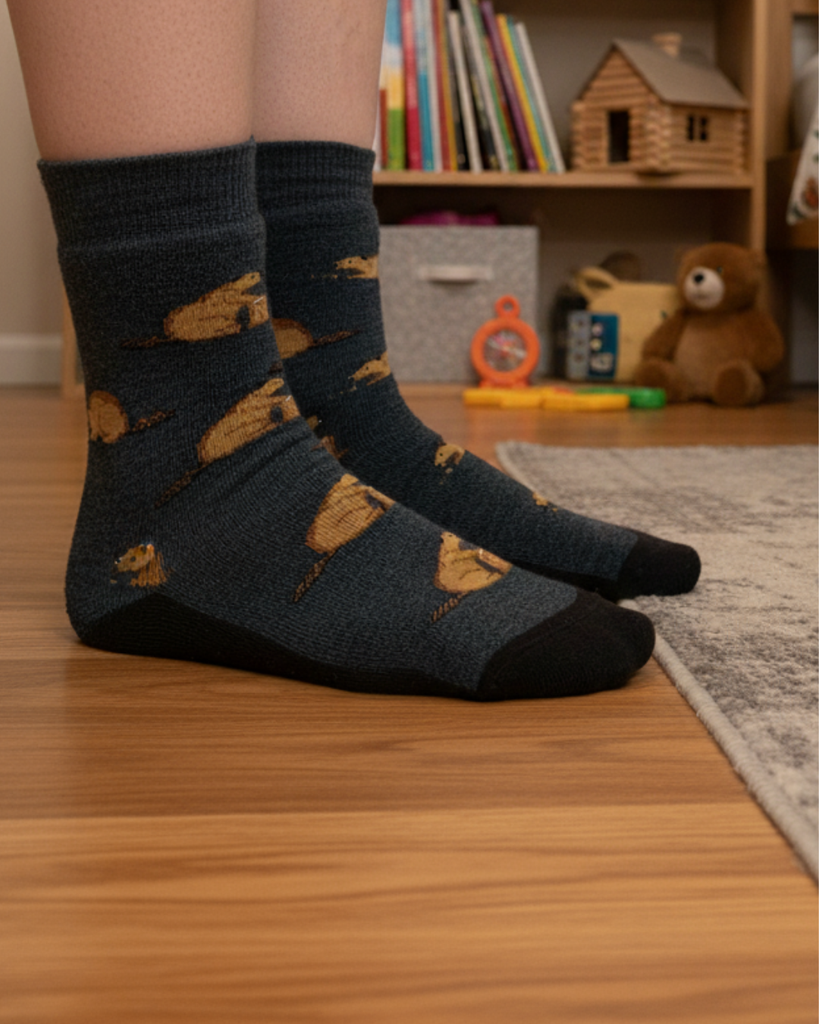Built for Busy Builders! These socks are ready for every big project, offering cozy warmth and non-stop comfort for your little beaver. Get ready to build, splash, and explore! These socks are the perfect cozy companion for the child who is always working on their next big masterpiece.