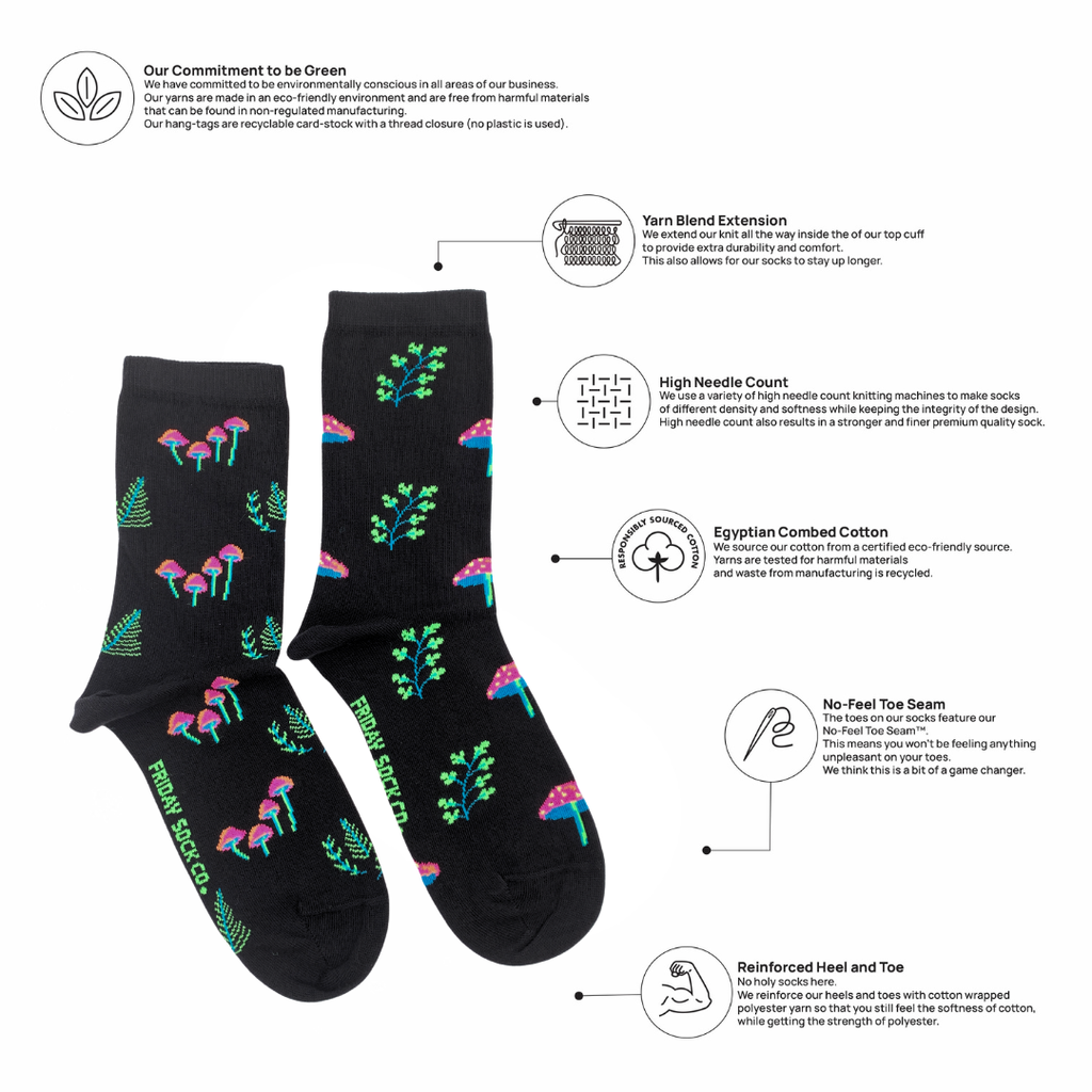 A little funky, a little forest-y, and totally fun(gi). These Neon Mushroom Socks are proof that good things grow in unexpected places... like your sock drawer!