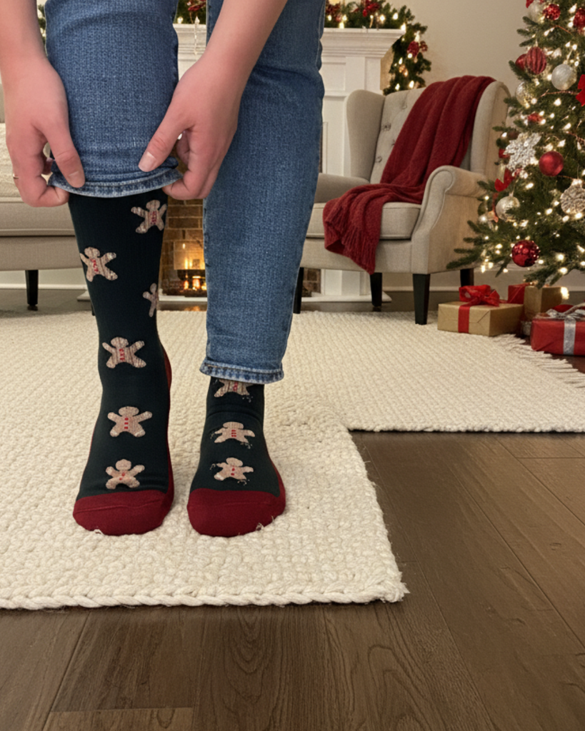 Sweet Style, Supreme Comfort. The perfect sock to celebrate the holidays, from decorating the tree to sipping cocoa by the fire. Get into the holiday spirit with a treat for your feet! Our Women's Gingerbread Merino Wool Socks feature an irresistibly cute pattern of (some) smiling gingerbread men. They're the cozy, cheerful addition for your winter wardrobe needs.