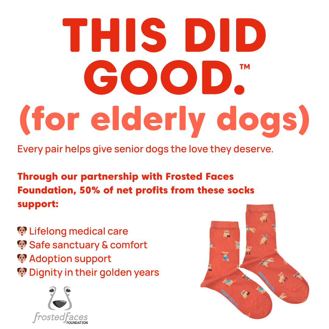 This pair gives back to Frosted Faces Foundation, an organization dedicated to rescuing senior dogs and providing them with lifelong care, love, and sanctuary. Because every dog deserves comfort, dignity, and belonging at every stage of life.