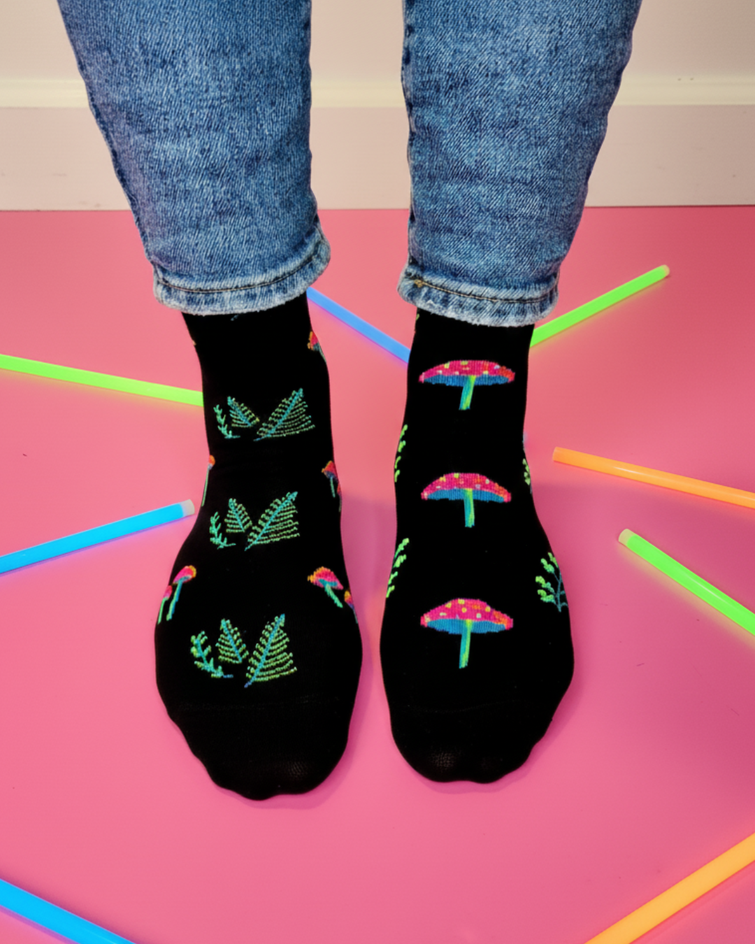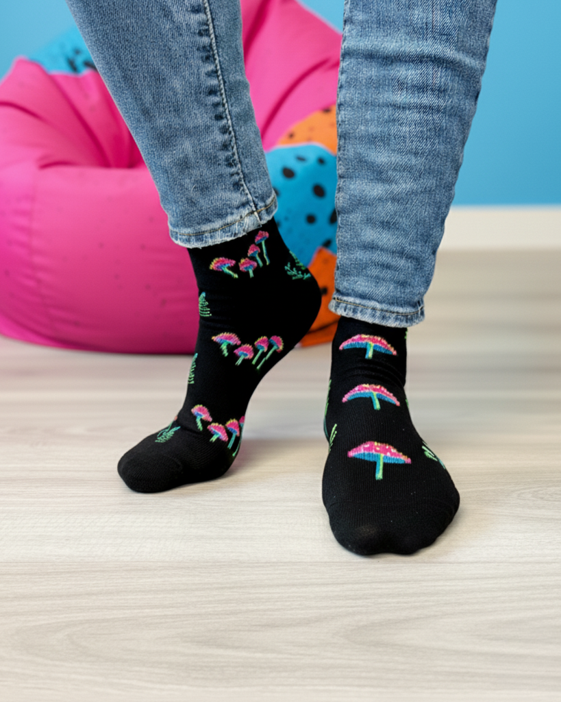 A little funky, a little forest-y, and totally fun(gi). These Neon Mushroom Socks are proof that good things grow in unexpected places... like your sock drawer!
